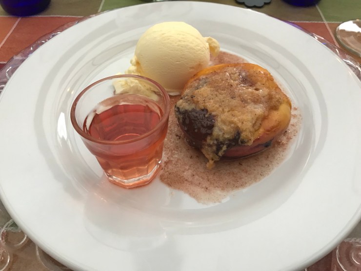 ÜBERBACKENE PFIRSICHE MIT AMARETTINI UND SCHOKOLADE
