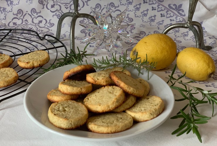 Dennoch sollte es etwas sein, dass man an diesen kalten Tagen mit einer guten Tasse Tee geniessen kann. Die Lösung hiess daher – Zitronen-Rosmarin Sablés